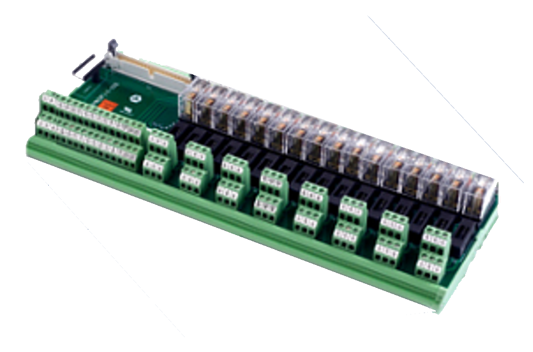 This is 24 Input & 16 Output relay interface module with 1C/O pot-free contact configuration having fuse protection per channel and screw type terminals at one end and 50 pin FRC male connector at other end used to interface with digital output card of PLC/DCS/RTU to field or field devices.