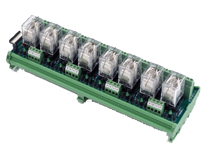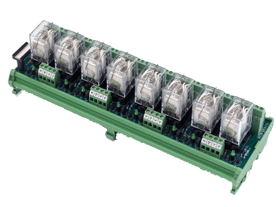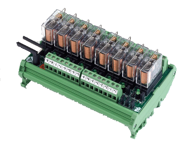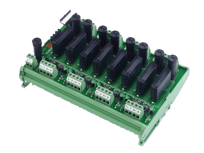 Solid State Relay Interface Module with fuse and Fuse Fail LED per channel having screw type terminals at both ends used to interface with digital output card of PLC/DCS/RTU to field or field devices