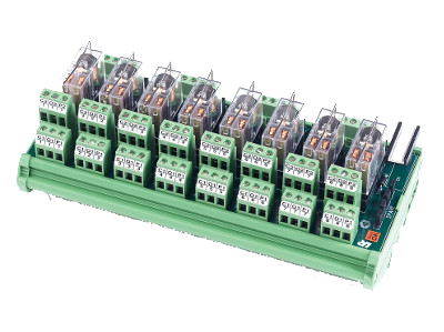 Relay Interface Module with free contact configuration with fuse protection per channel and having screw type terminals at both ends used to interface with digital output card of PLC/DCS/RTU to field or field devices.