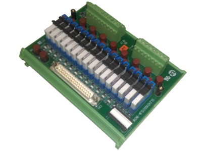 Slim Relay Interface Module with 1NO wetted contact configuration and fuse protection per channel having 37 pin male D-sub connector at one end and screw type terminals at other end used for interfacing PLC digital outputs to Field or Field devices .