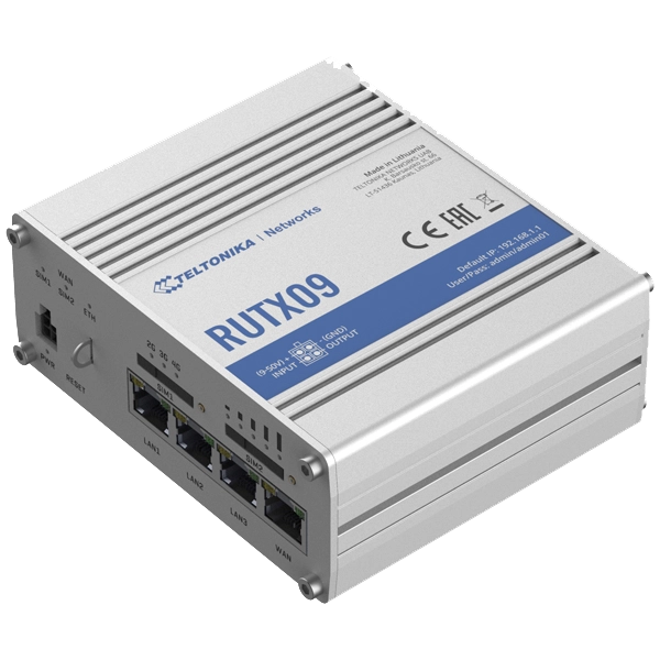This powerful LTE router is designed as Main/Backup Internet source where steady connection and high data throughput is required. Equipped with Dual-SIM and 4 x Gigabit Ethernet ports. RUTX09 has all advanced RutOS software and security features.
