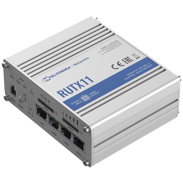 The most powerful and feature-rich device within the Teltonika Networking products range. Equipped with Dual-SIM, 4 x Gigabit Ethernet ports, Dual-Band AC WiFi, Bluetooth LE and USB interfaces. RUTX11 comes with all RutOS software and security features. This device is perfect for advanced Industrial and Enterprise applications.