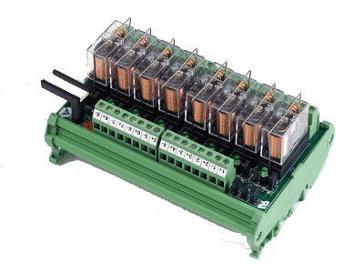 Relay Interface Module with free contact configuration with fuse protection per channel and having screw type terminals at both ends used to interface with digital output card of PLC/DCS/RTU to field or field devices.
