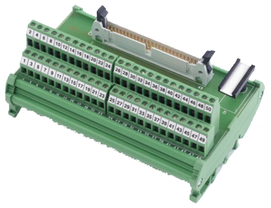 Passive Interface Module having screw type terminals at one end and 50 pin D sub male connector at other end used to interfacing PLC signals to field or field devices and convert conventional single core wiring into Modular wring.